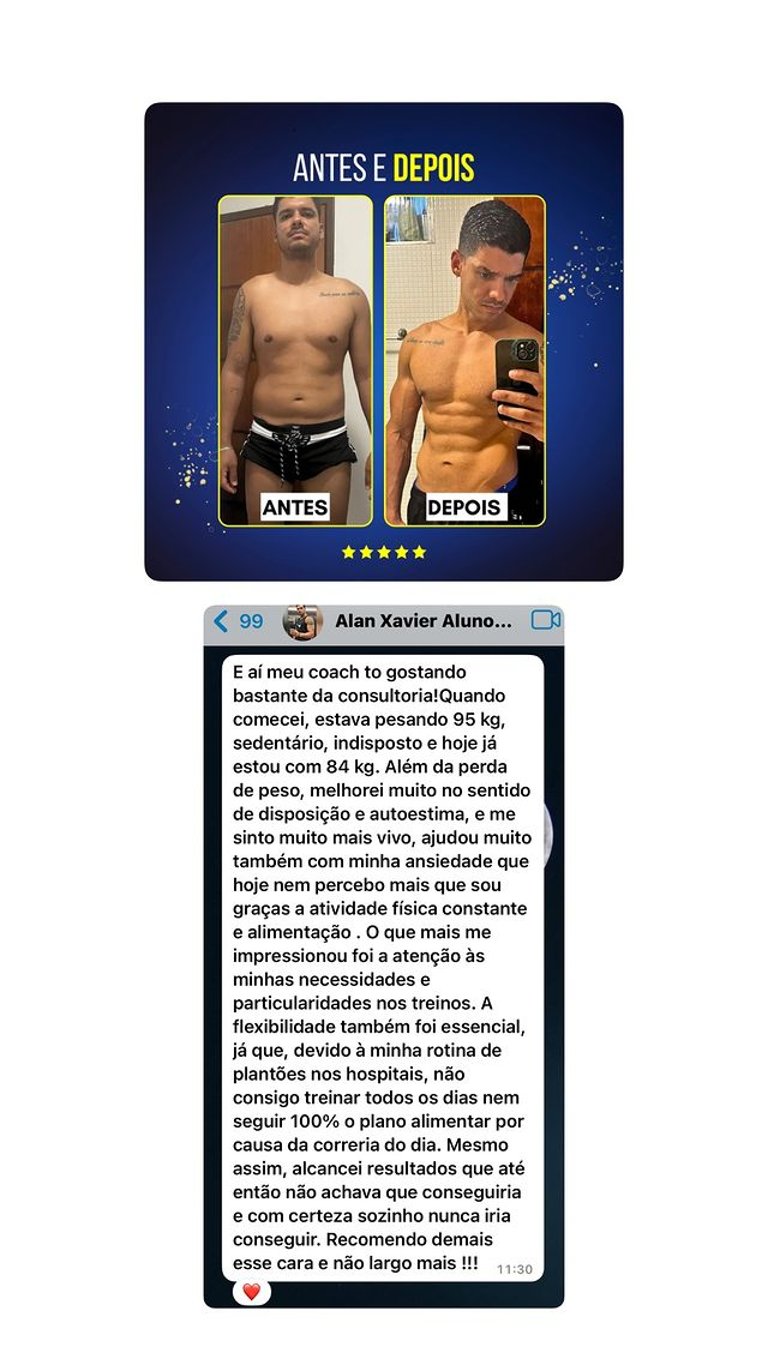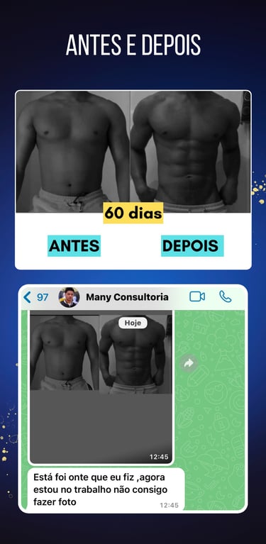 Este é o coração do nosso método exclusivo. Ele combina treinos/dieta/cardio estratégicos que ativam diferentes fibras musculares, otimizando seu metabolismo e melhorando a sensibilidade à insulina. Com isso, você consegue queimar gordura de forma eficiente e acelerar o seu progresso em direção a um corpo mais definido e atlético.